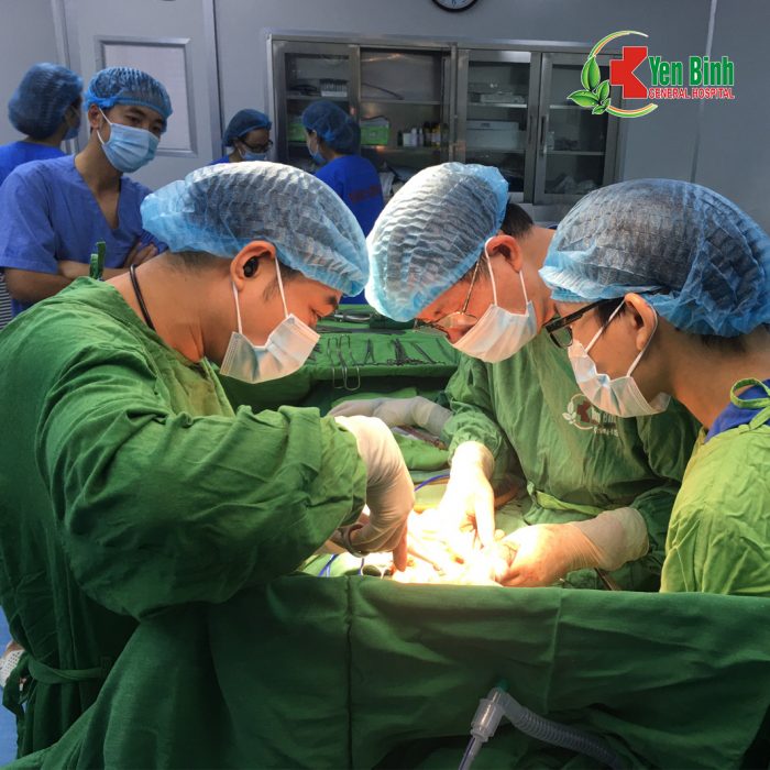 Thạc sỹ BS CKI. Nguyễn Hồng Ninh, Phó Giám đốc Bệnh viện Đa khoa Yên Bình Thái Nguyên trực tiếp thực hiện ca phẫu thuật cắt dạ dày cho bệnh nhân D.T.B