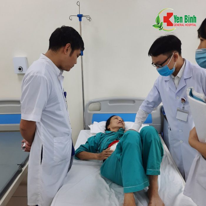 Các bác sỹ Khoa Ngoại tổng hợp, Bệnh viện Đa khoa Yên Bình Thái Nguyên kiểm tra vết mổ cho bệnh nhân D.T.B