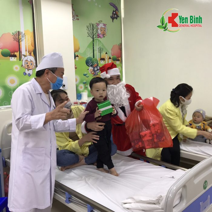 ?Giáng sinh là dịp nhiều trẻ em được dắt đi chơi, được tặng quà và ngắm nhìn những không gian trang trí nhiều màu sắc rực rỡ. Bên cạnh đó, có những em bé lại phải đón Giáng sinh trong bệnh viện. Với mong muốn đem tới một không khí giáng sinh ấm áp, tràn ngập tình yêu thương đến những bệnh nhi, Bệnh viện Đa khoa Yên Bình Thái Nguyên đã tổ chức tặng quà cho các bé đang điều trị tại bệnh viện.