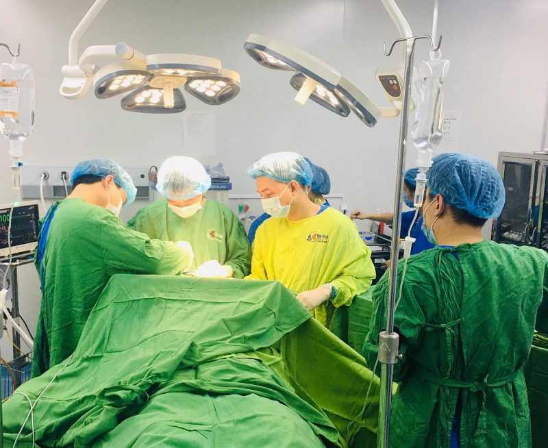 Các bác sỹ Khoa Ngoại Tổng hợp đang thực hiện phẫu thuật cho bệnh nhân Hà.V.Đ